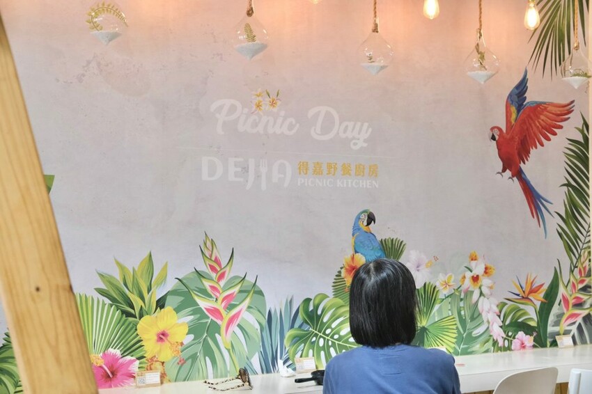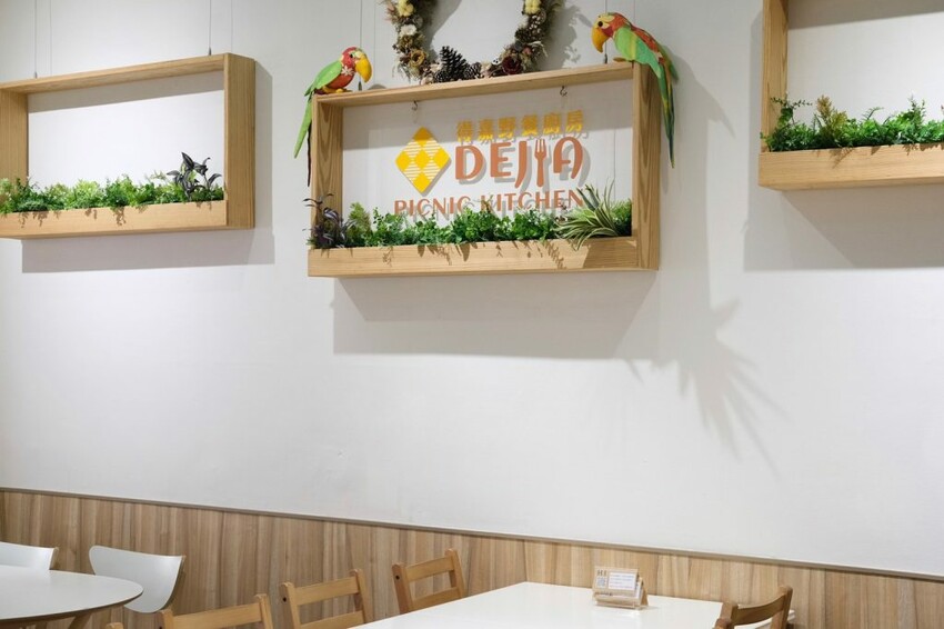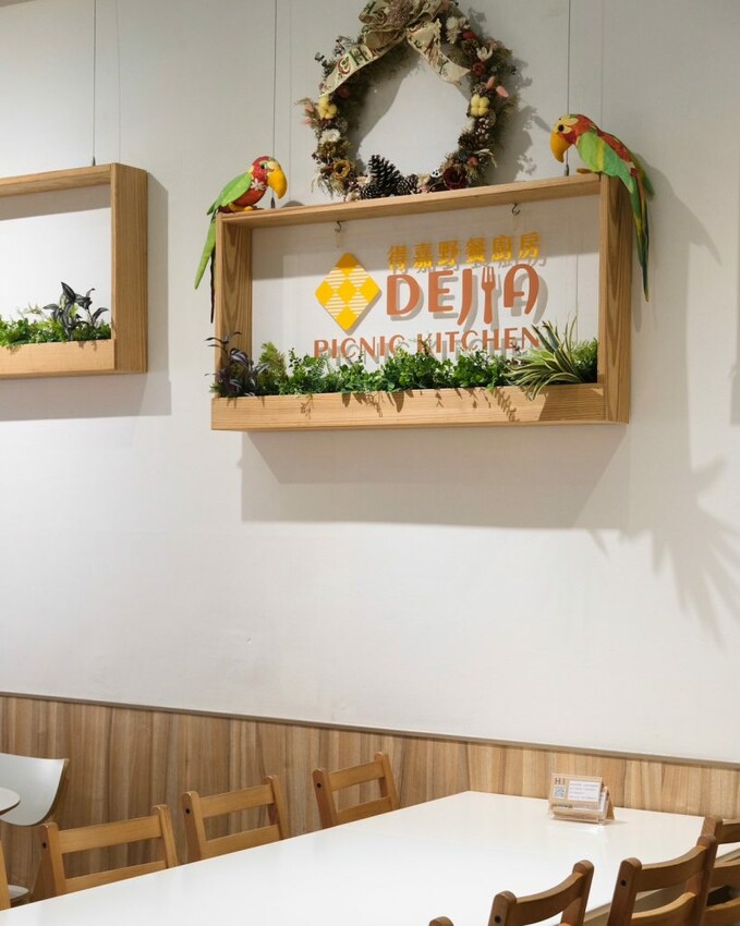 ▼【Dejia得嘉野餐廚房】用餐空間採用滿滿的綠意植栽,搭配木質調的裝潢設計,營造出清新的戶外野餐般氛圍。