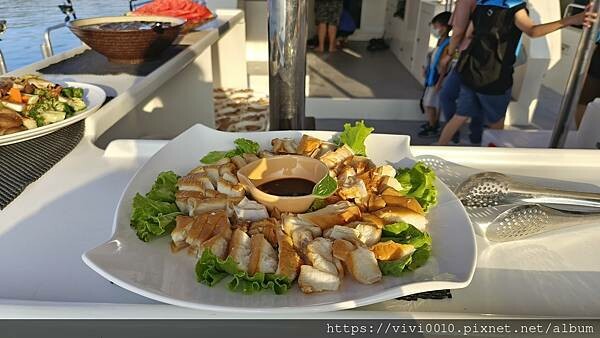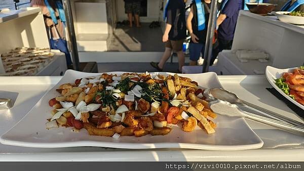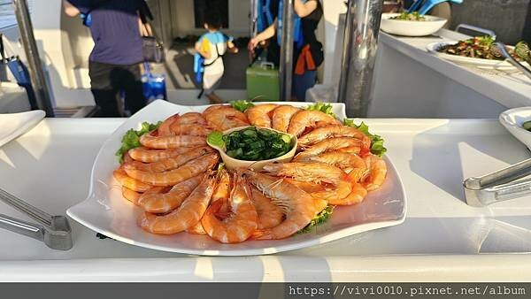 黃昏時出航,看著夕陽落海浪漫愜意,還有船家準備的豐富海味,看著一望無際的大海吃著新鮮美味
