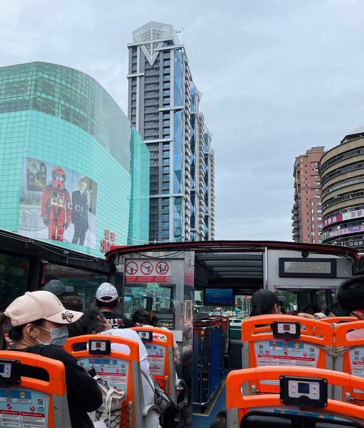 有時候將自己暫時抽離習慣的交通路線,做個「偽觀光客」,更能以不同的角度來對待身邊的人、事、物。臺北人搭乘雙層觀光巴士遊信義區是種儀式感,意外收穫是導覽介紹著之前沒聽過的台北故事。紅線由台北車站出發,中間行駛忠孝東路、信義路到台北101大樓(約30分鐘),再折回台北車站。