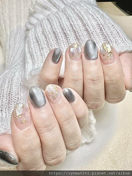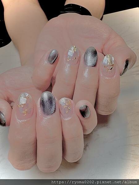 (光療:貓眼石灰V.S金箔貝殼+銀河系耀眼美甲)