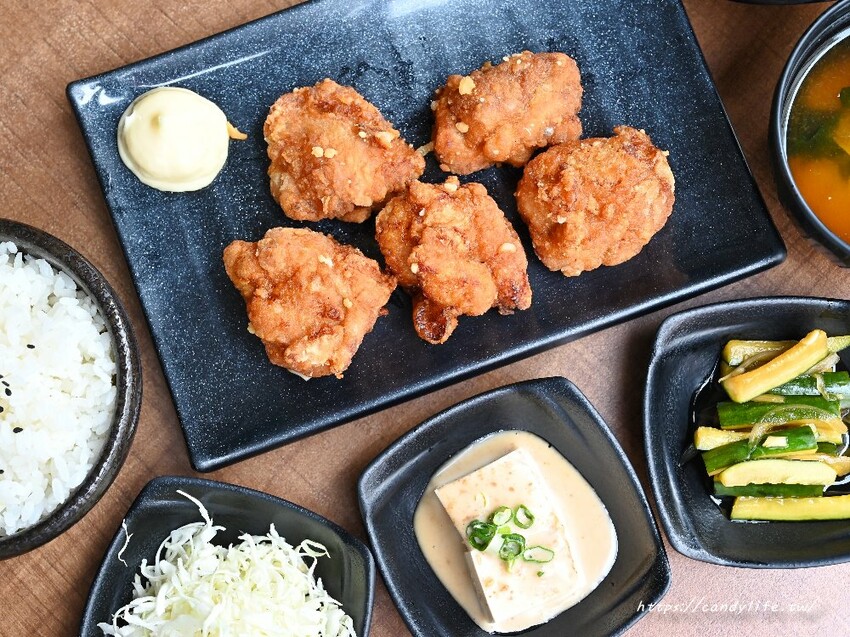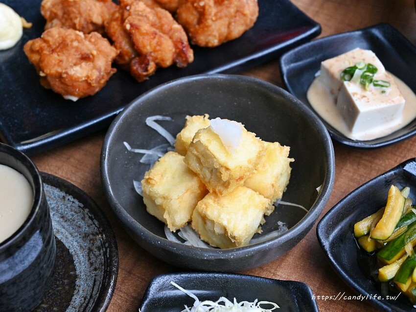 小菜高麗菜絲佐和風醬汁,口感清脆,吃起來相當清爽又開胃,另外兩道小菜今天糖糖吃到的是胡麻豆腐及涼拌醃小黃瓜