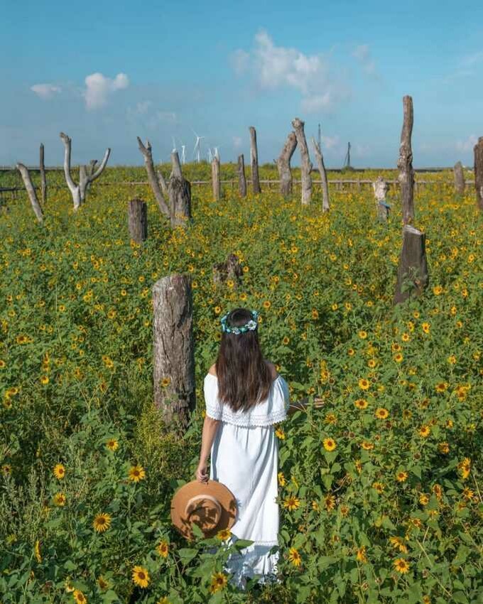 以蚵仔聞名的「王功漁港」,偶一處酷似一根根打蛋機的風力發電機杵立在魚塭之間的特殊景象,這裡就是「王功風力發電廠」,數量之多是不是像極了外星人的秘密基地呢?剛成立時數量高達400多柱,而後續因執照申請問題導致數量減少了一些,但這景觀實在是太好拍了,每到假日「王功風力」的魅力絲毫不減,還是吸引不少人到這打卡取景!有機會的話現在正是向日葵盛開的季節,與一整片的風力發電機形成一幅有趣的畫面。