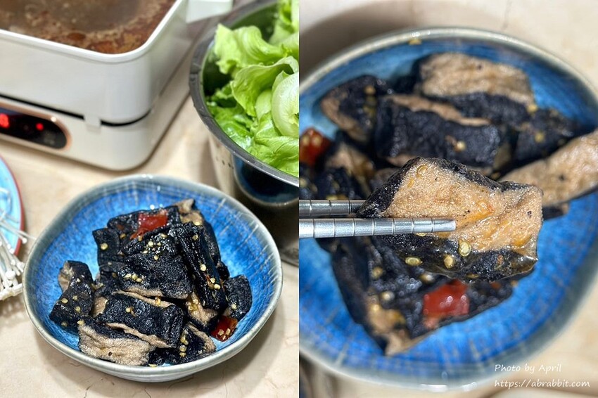天下第一臭豆干真的是臭到極致,外觀黑黑的,不是那種一般臭豆腐的味道,用的是小豆乾加上黑豆下去發酵,吃起來會爆汁,搭配麻辣鍋瞬間會變成麻辣臭臭鍋!