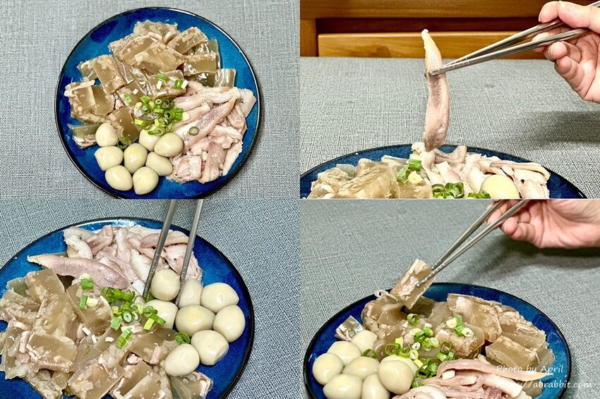 白滷當歸豬腳一樣冷盤就可以吃,一塊豬腳的份量蠻剛好的,有Q彈的外皮配上紮實的肉,骨肉也不會難分離,而且還能吃到當歸的香氣,中藥味淡淡的、整體吃起來清爽又令我驚豔,因為這白滷當歸豬腳的口味我第一次吃,有別於滷汁的那種豬腳肉,特別令人著迷欸。
