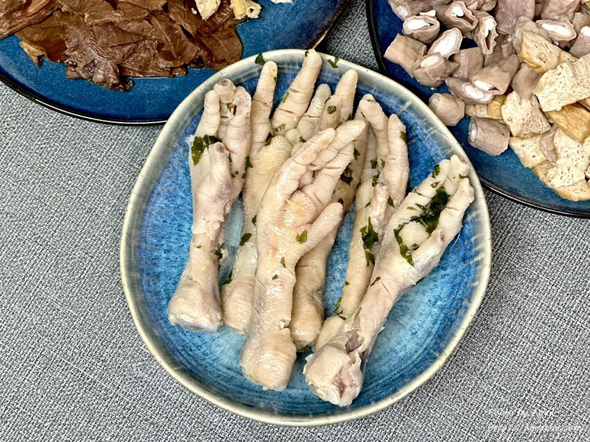 他們家的雞腳蠻大支的,仔細看都把前面的爪子拔掉,也太貼心!滷的口味是酸辣的,這點也是我蠻驚喜的,加入九層塔和香菜提味,酸辣的口味也蠻不錯吃的欸!他們家的雞腳口感是比較Q的那種,所以很愛啃雞腳的朋友們千萬不能錯過。