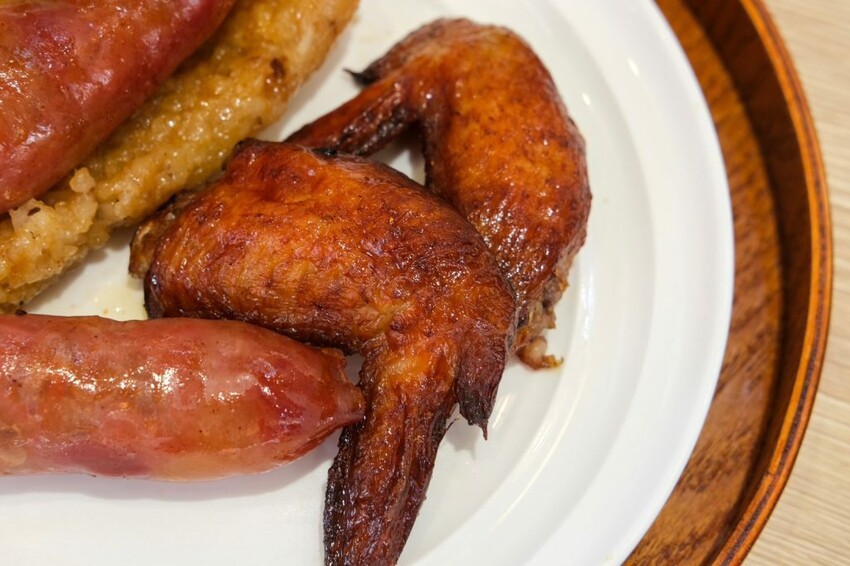 ▼還沒吃就聞到香氣的獨門烤雞翅,外皮呈現微焦的金黃色澤,裏頭的肉質軟嫩帶著肉汁,越嚼越香,微辣的滋味非常涮嘴。