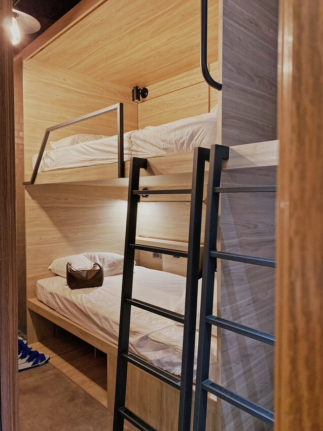 我們家三口子還蠻喜歡這樣的格局,一人擁有獨立的空間客床,不用擔心睡眠裡影響,尤其孩子看到雙層床特別的興奮,但婗怕摔~所以是老娘睡上層!
