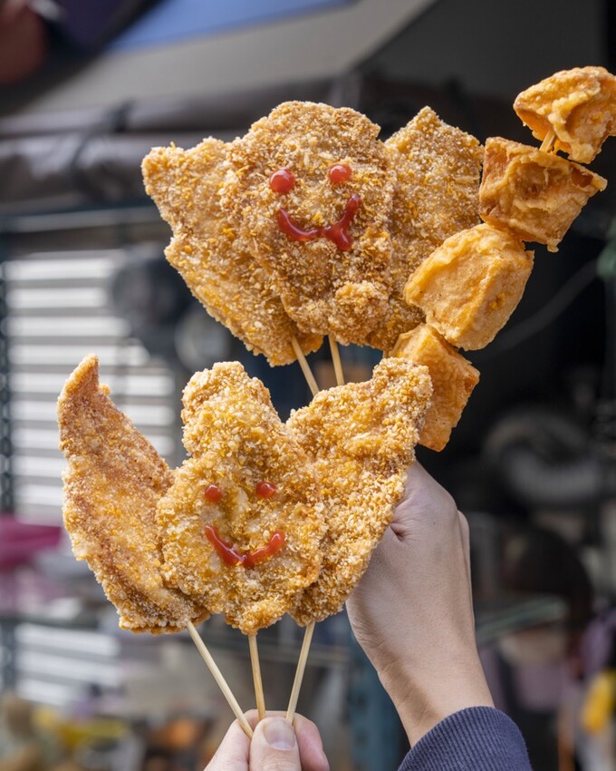 隱藏在住宅區的巷弄內,沒有明顯的招牌,但就很香XD 沿著人潮跟香香的味道就能來到「鼎小古早味炸物」攤位前。