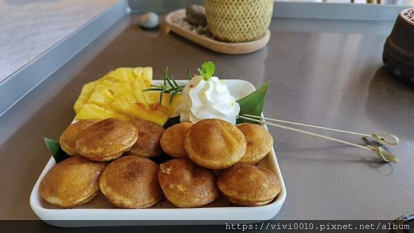 小鬆餅NT$100,外酥內軟,一邊還有焦糖鳳梨好吃!!酸酸甜甜的很開胃