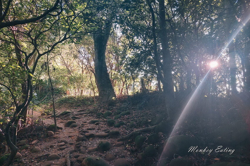 上上下下的緩坡路段,大部分為不規則的石頭土徑,早上就看到好幾組人來練跑