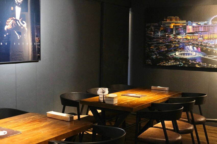 ▼【炭火俱樂部 Charcoal BBQ Club】用餐空間採用深色調為主軸,搭配木頭材質的桌椅設計,充分營造出美式餐酒館的氣氛,以4~6人座位為主,很適合三五好友或是多人團體聚餐,也有提供包場舉辦餐會活動。