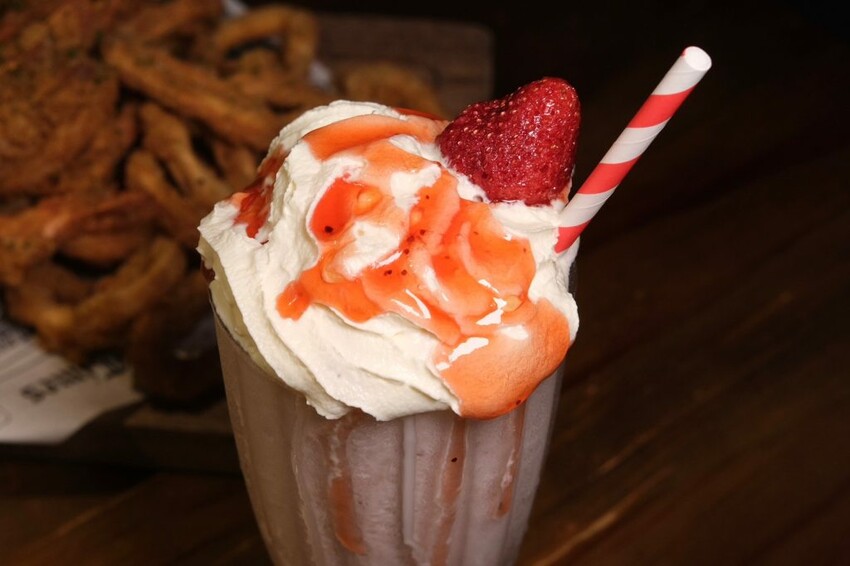 ▼充滿美式風格的浮誇草莓奶昔,頂頭擠上滿滿鮮奶油和草莓醬,將草莓加入冰淇淋與鮮奶打製,喝起來有著草莓的天然香氣,甜度偏高,是螞蟻人會很喜歡的口味,另一款季節限定的鳳梨椰奶冰沙,喝得到新鮮鳳梨與椰奶融合的風味,鳳梨的酸平衡了甜度,讓整體更加甜香不膩口,冰冰涼涼很是消暑!