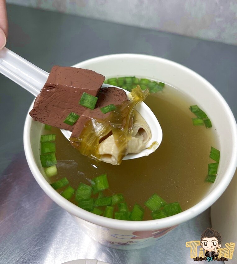 小腸豬血湯(50元)也是必點的,有小腸、豬血、酸菜、韭菜等湯料。