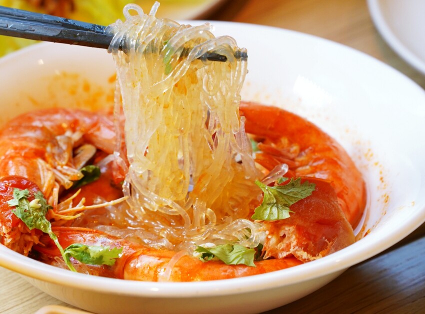 ▼凡於格拉斯麗台北飯店 KI-A-BIN-SAN 枝仔冰城用餐,贈送每人一碗價值 NT$380 元的「酸辣鮮蝦粉絲煲」,選用產地直送鮮蝦,以蠔油炒香,再加入雞高湯熬煮收汁,放入微酸微辣的湯底。