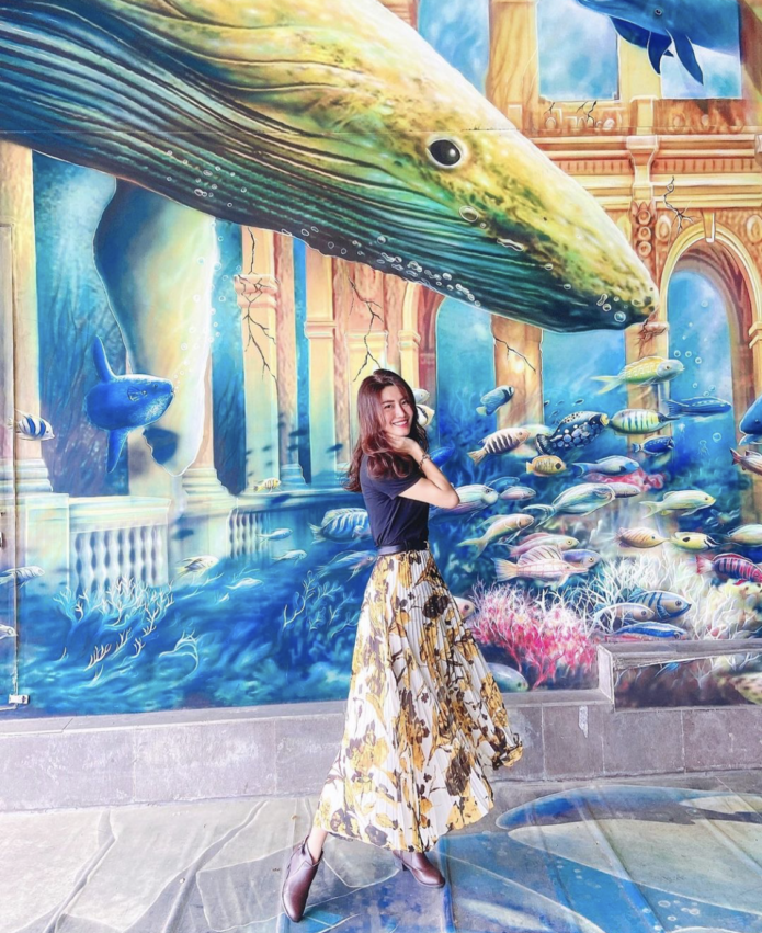天花板壁畫更是令人驚艷,超級精緻的繪製出西方大教堂或是宮殿中的壁畫,再結合3D畫工,拍起來簡直是融合了古典與現代的華麗展現!博物館長廊底的海洋畫作,也是所有人到博物館的必拍場景之一,夢幻的海底世界,與大鯨魚互動、彷彿自己成為小美人魚般浪漫。