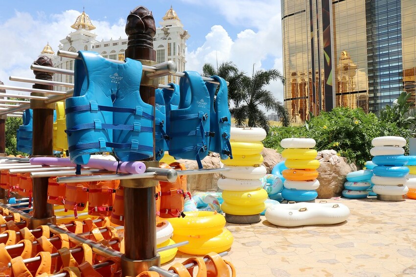 園區內看到的救生衣.各種游泳圈全部都是免費提供,不用額外付費很佛心!