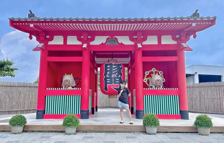 互動體驗完,不免還是要到園區內拍照打卡,在園區內千萬別錯過比照日本東京雷門規格的縮小版-豚門,有著可愛的水豚來當豚門的左右護法,真的可愛極了!