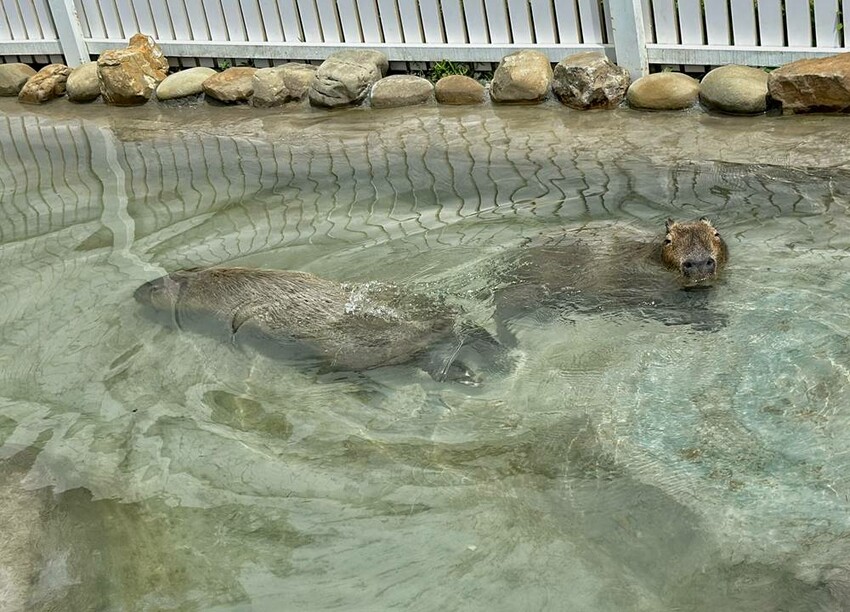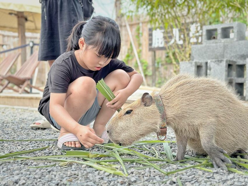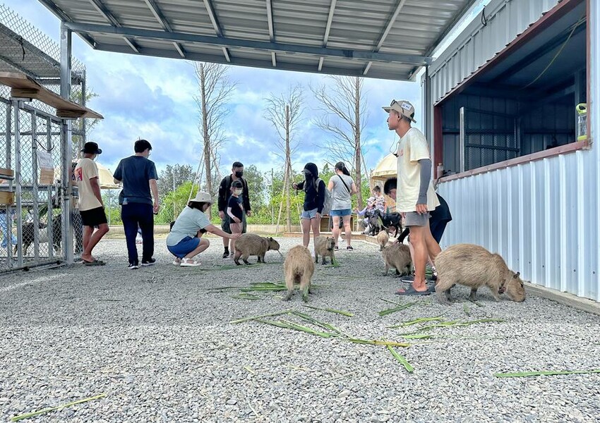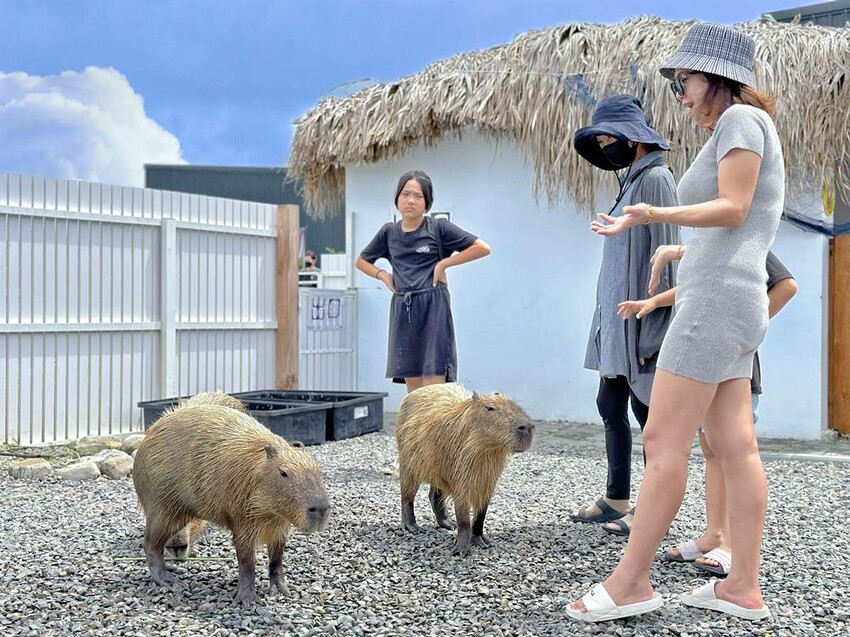 本來以為墾丁鹿ㄦ島水豚生態園區就只有這互動區可以體驗,想不到一旁親切的工作人員告知我們水豚共遊區旁也還有一小區水豚可以互動體驗,但那區的水豚會比較大一些,如果覺得不喜歡則還是可以再回到這一區的互動區。