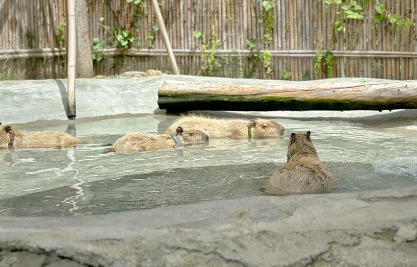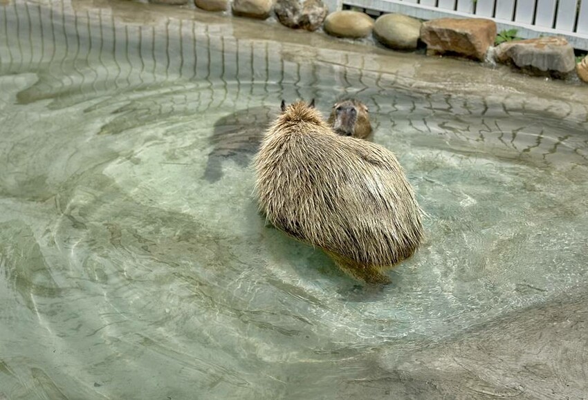 購票後,服務人員會指引方向直接進入到園區內,園區內主要分為水豚泡澡區、牧草兌換處、小羊區、雷門區、梅花鹿互動區、水豚互動區、水豚共遊區、洗手間以及咖啡館等!