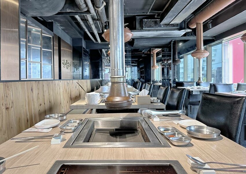 韓舍韓式燒烤-中壢店的裝潢設計算屬簡約,用餐區分為四樓和五樓,用餐位置皆由服務人員做安排,基本上是四樓坐滿了才會安排到五樓的用餐區。