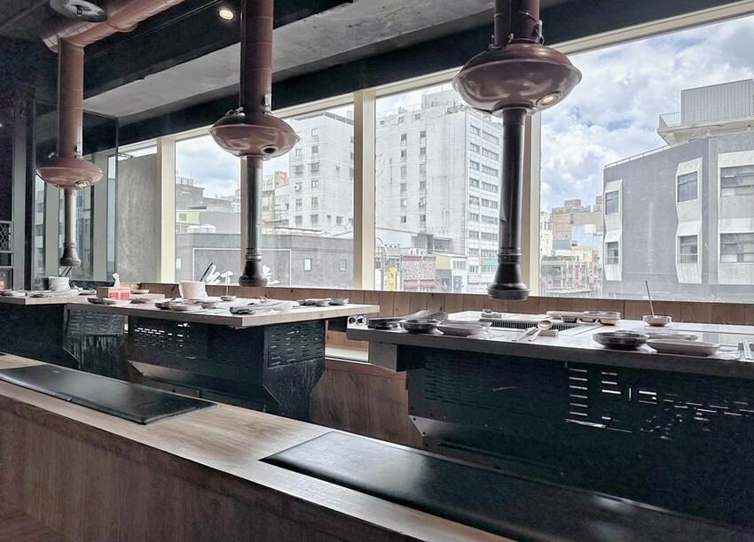 而這天我們是被安排坐到四樓的靠窗的座位,每桌都有個金色大銅管,這可是上吸式的抽油煙,讓我們在用餐後不會全身油煙味喔!