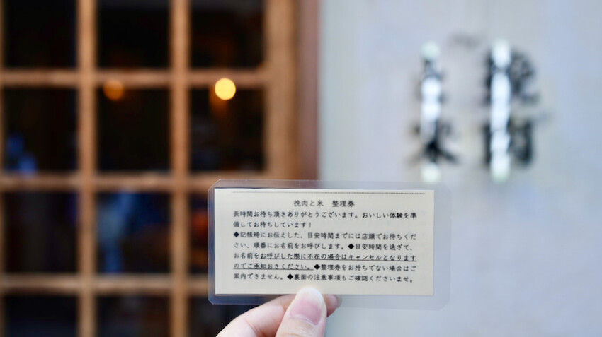 拿到號碼牌囉!我發現大家都登記12點之後或是下午用餐,所以我們有排到第一組11點進去用餐喔!號碼牌上只有日文,大概重點就是登記用餐時間前要回來,過號就錯過囉~