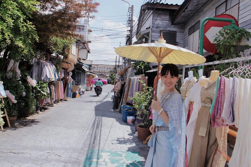 在mahasané thai costume之前,婗媽其實有預約一間台灣人開的泰服體驗,位置就在MRT ISARAPHAP地鐵站出口,因為ISARAPHAP地鐵到鄭王廟要再搭車,怕太熱太狼狽,加上時間抓不準,想去泰國再決定出發時間而退訂,後來才知道mahasané體驗泰服的價格好便宜,泰服飾品含髮型才250,原本借紙傘好像不用錢,但這次去要多50泰株,所以這次體驗一人共300泰株!