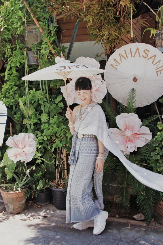 婗媽喜歡衝突美,所以沒特地帶鞋換 (因為家裡適合的涼鞋剛好壞了,原以為泰國有的買,結果沒逛到),穿布鞋我不覺得難看,反而還能防曬呢!但建議是全白比較好配!若真的不行~拍照時略過鞋子也可以!
