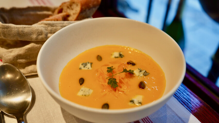 今日濃湯是南瓜濃湯,裡面還有乳酪,超濃郁。