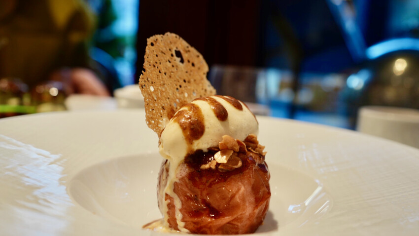 甜點:底下是一整顆燉煮蘋果,上面是手作義式冰淇淋。