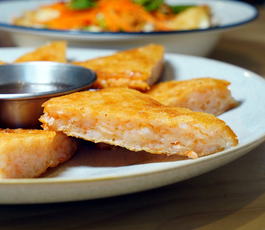 ▼月亮蝦餅(厚切),店內的月亮蝦餅有分一般厚度跟厚切版本,看到厚切就忍不住想來一份試試!