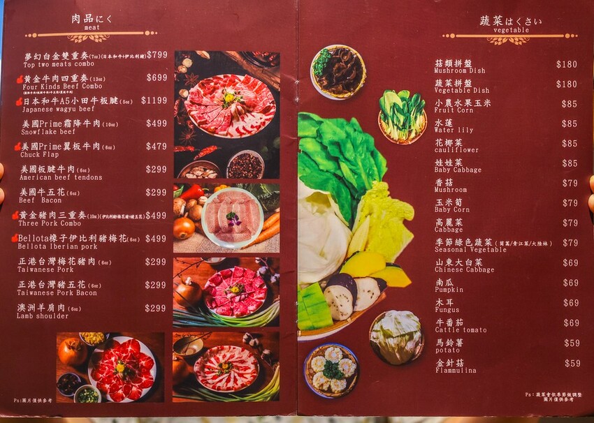 鍋底每人120元,可以選鴛鴦鍋不另外加價