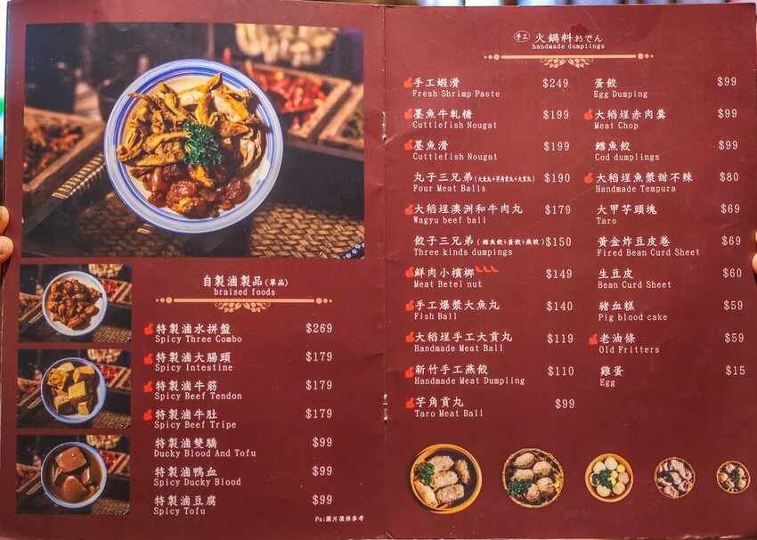 大稻埕美食 本鼎堂台式漢方麻辣鍋 菜單