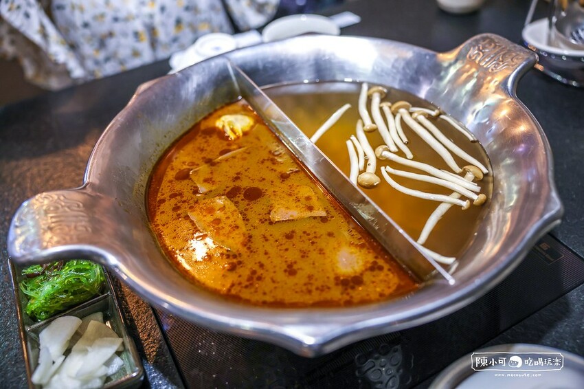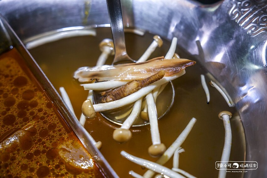 菜單寫著每日限量供應,使用數十種中藥熬製,純素食者也可以食用的鍋底。韻味帶有淡淡的中藥香,聞起來很香,還加了我很愛的菇菇,甘甜順口的湯,我覺得不愛吃中藥的人也可以試試看,加入蔬菜拼盤的風味更添鮮甜。