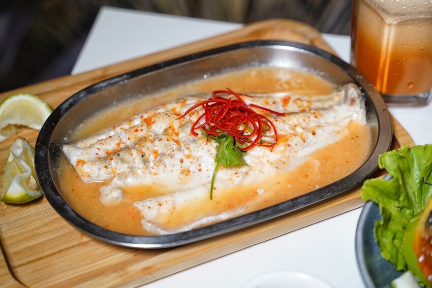 「泰式清蒸檸檬魚」使用去骨魚排去搭配檸檬、泰式調味料製作,再以清蒸方式烹調,魚肉幾乎是入口即化,檸檬酸得開胃,絕對是道老少咸宜的泰式料理。