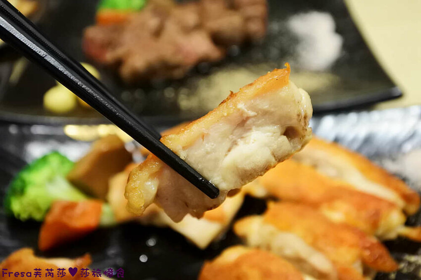 菲力牛排和雞腿排,香煎帶有飽滿肉汁不乾硬.