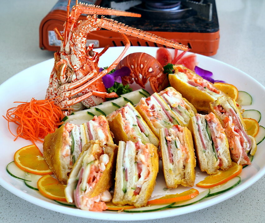 ▼龍蝦三明治,這道也是海鮮餐廳比較常見的功夫菜,看起來顏色相當繽紛,小朋友看到整個口水流滿地(笑)!