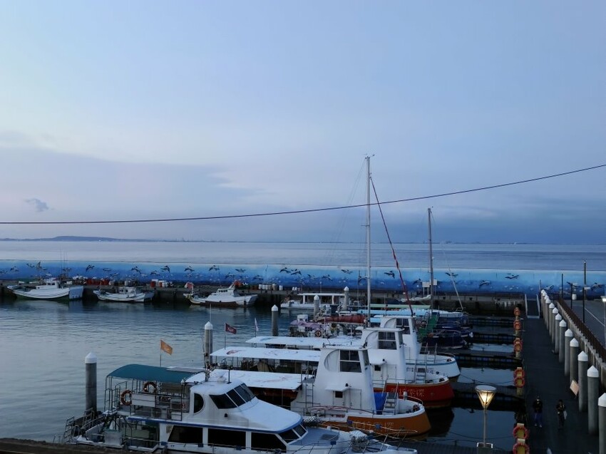 ▼隨著夜幕低垂,傍晚的海港風光也非常迷人,雖然白天天氣很熱,但下午就有涼涼徐風,吹來其實很舒暢。