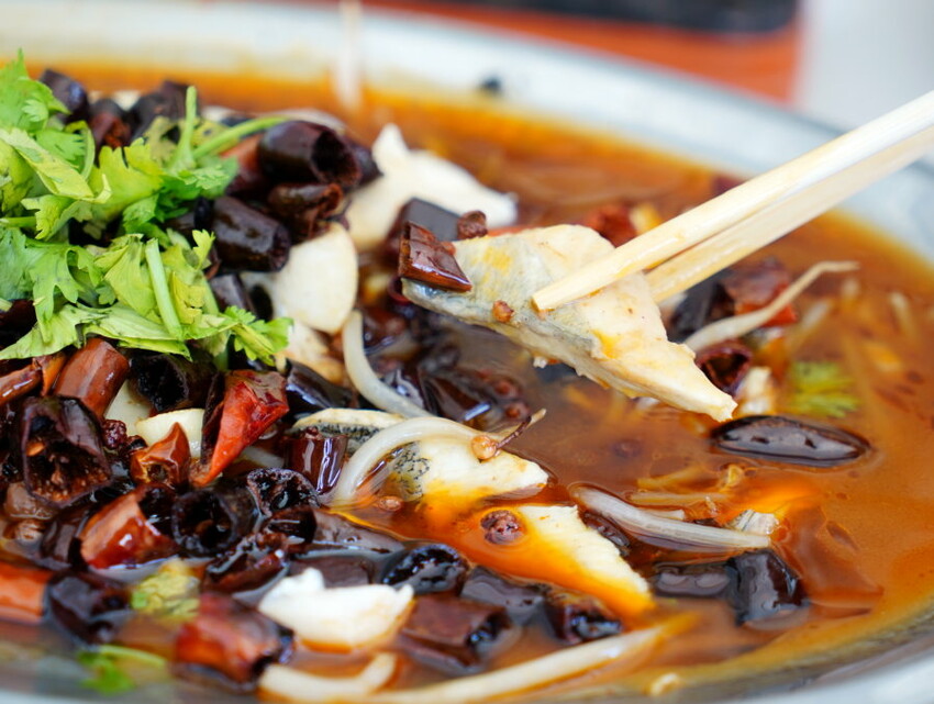 ▼微麻帶點小辣的湯頭搭配肉質細嫩、口感嫩彈的水針魚整個很入味,吃起來也不會過於油膩,一口白飯一口水煮魚剛剛好。