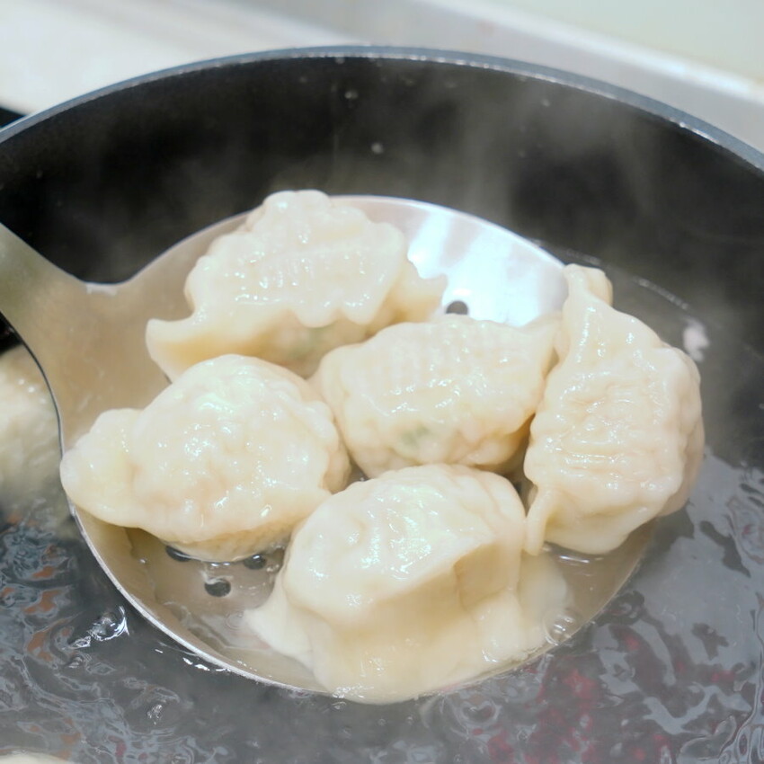 ▼煮法也很簡單,滾水下鍋後煮個5~6分鐘使水餃熟透即可。