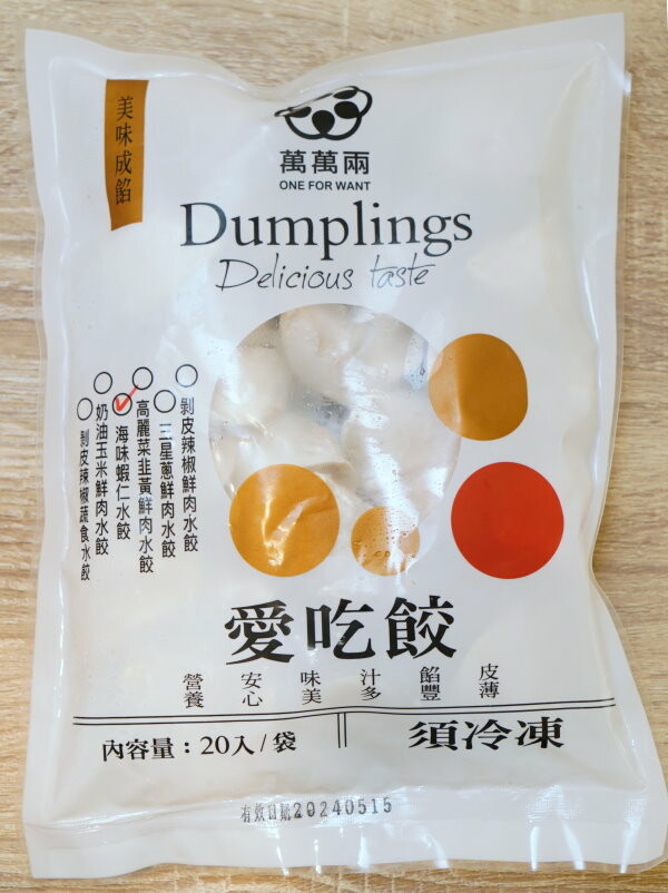 • 包裝細節:包裝的話我個人比較在意的是保存方便與否,理論上水餃不會沾黏、採用夾鏈袋裝都是比較好的選擇。