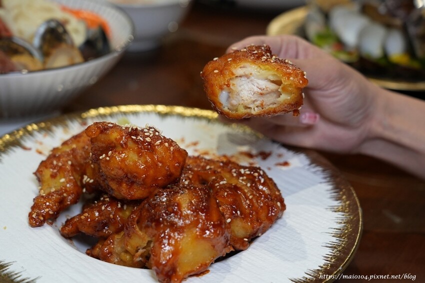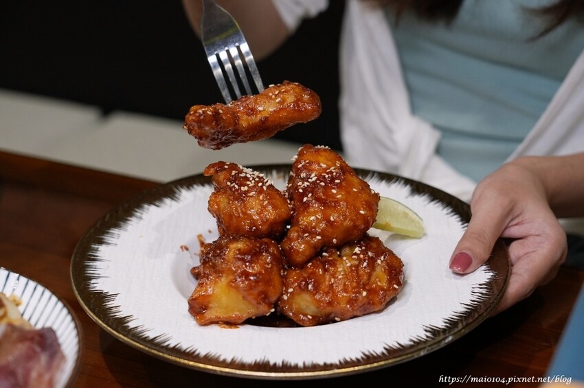 韓式炸雞外皮酥脆、裡面肉質保有肉汁及鮮嫩的口感