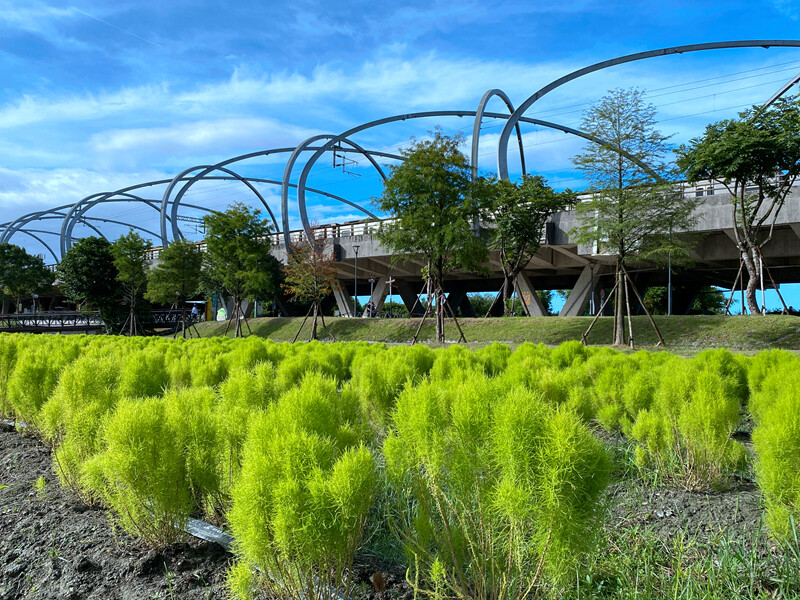 冬山火車站高架鐵道下,沿著舊河道走步行3分鐘,就可目睹波波草與風箏地景 - 開放時間:全天候24小時開放