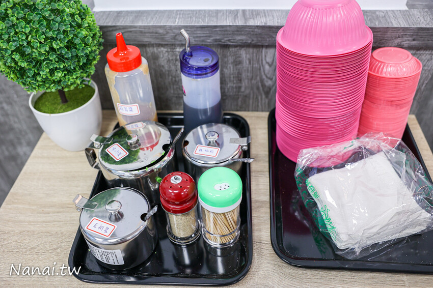 由於店家沒收取服務費,醬料、塑膠碗、餐巾紙都是採自助式方式。