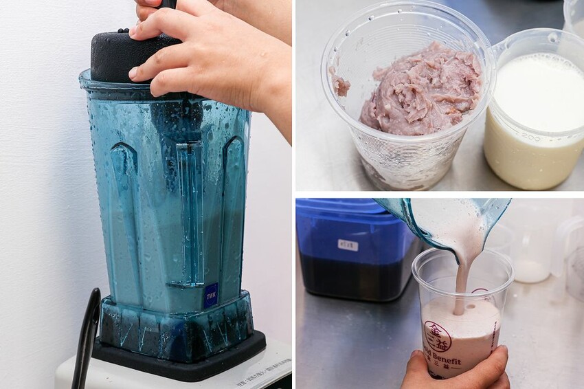 金三益健康茶飲的飲品選項琳瑯滿目,其中泥漿鮮奶芋是店裡熱門商品,選用屏東芋頭下去蒸煮,蒸完後壓成泥,最後加入鮮奶製作,啜飲一口芋頭香氣在嘴裡化開,濃稠中帶顆粒感,鮮奶香醇好濃郁。