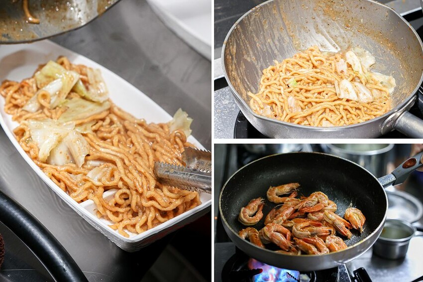 帶大家直擊廚房,之所以一開幕出餐就塞車是有原因,金三益每份餐點都是現點現做,堅持使用自家熬煮的海鮮高湯為基底,以及採用市場配送的急速冷凍海鮮食材,鍋燒意麵現點現炒,同時海鮮都是各別處理現煮熬煮,其中紅蟳內臟也有處理過才上桌,每道程序繁瑣複雜,為了就是讓客人吃到滿滿鮮味,不僅如此給的量相當霸氣,毫無計較就是放好放滿,完全看不見底層的麵體,用料沒在省!