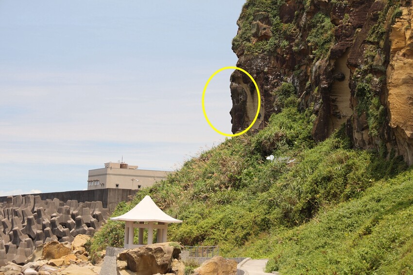 而在靠近涼亭前,發現了岩壁有張少女的側臉,額頭、眼窩、鼻樑及嘴唇都清晰可見,因此有少女崖的稱號。島工老師說,若大家認為這位少女已婚,那便可稱為。