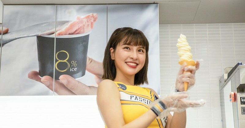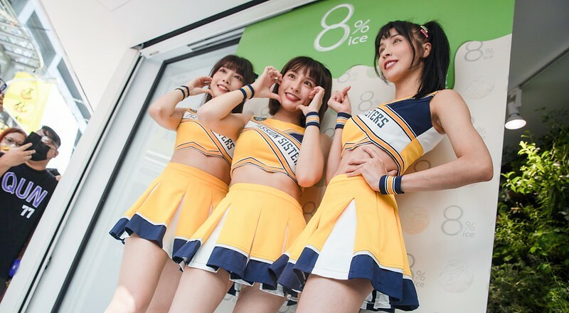 上百位的球迷,也分不清是為了啦啦隊、還是為了買一送一的冰品而來,大人、小孩拍的、吃得不亦樂乎...。身為8%ice和象迷的雙重粉粉,也很高興雙方可以合作。
