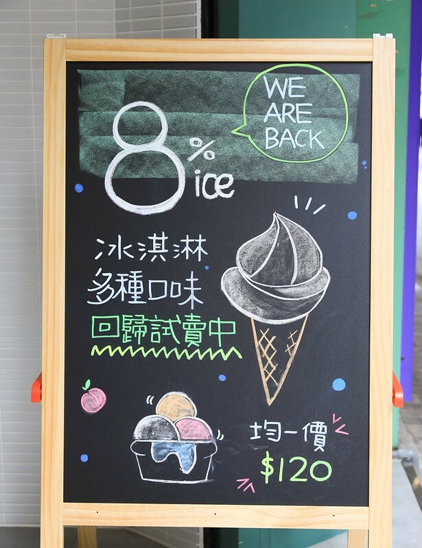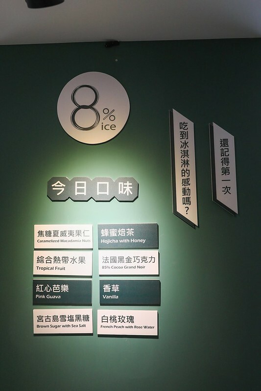 同樣的回歸後的8%ice 冰淇淋一樣有義式冰淇淋、雪酪和霜淇淋三大選項,每日提供不同的口味,最重要的是這裡的冰淇淋都是真材食料,沒有添加香精哦,所以千萬別拿便利商店一隻3、40元的來比.....。