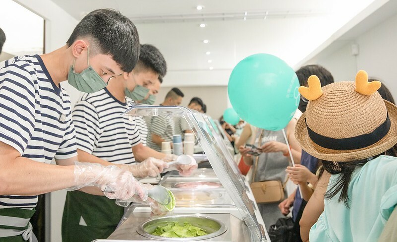 三人各自手作冰品供媒體記者拍照,啊,有沒有人要吃峮峮擠的霜淇淋?影片是峮峮無練習版,現場手作霜淇淋!